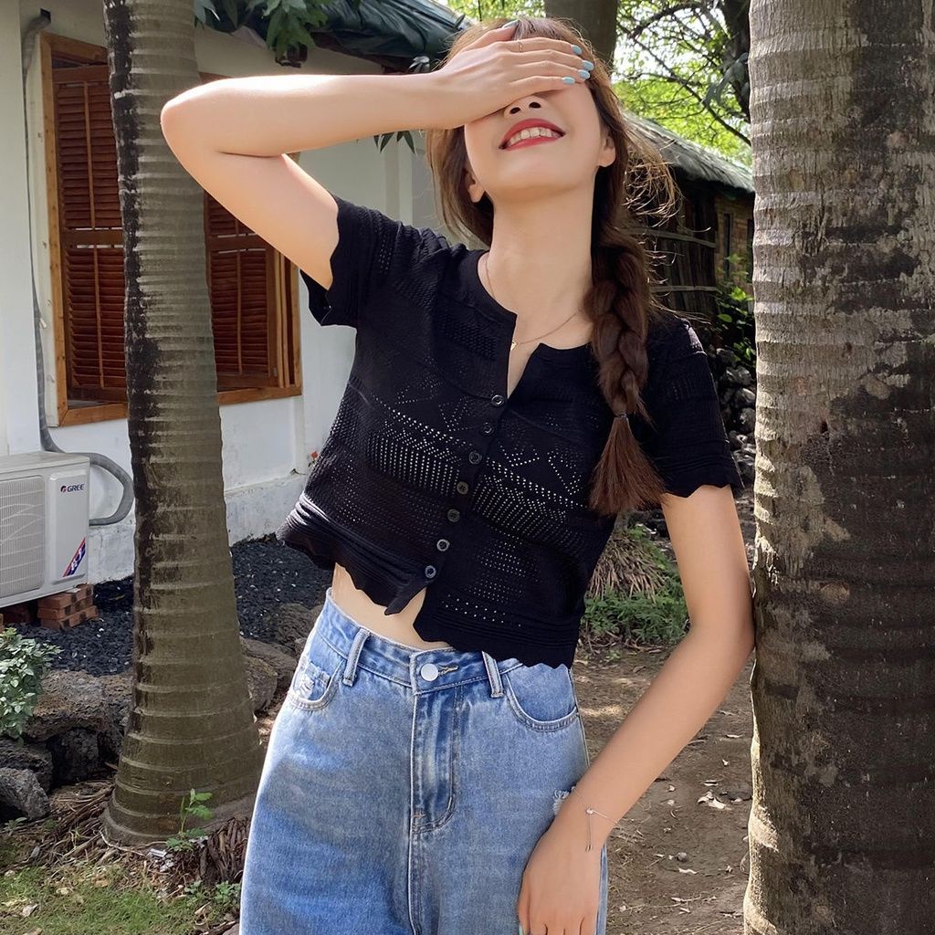Giới thiệu Áo Croptop Dệt Kim Tay Ngắn Cổ Chữ V Dáng Ôm Thời Trang Cho Nữ