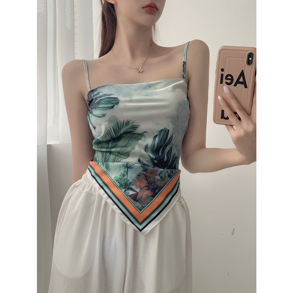 _Thông số về sản phẩm Màu : hoa văn xanh Kiểu áo : croptop yếm Kiểu tay : không tay _Size : freesize dài áo : 50cm ngực : đều chỉnh