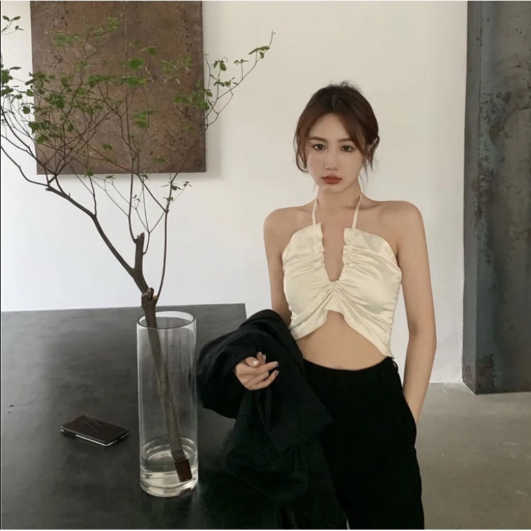 Giới thiệu Áo Croptop Không Tay Cổ Chữ V Gợi Cảm Phong Cách Hàn Quốc Cổ Điển Cho Nữ