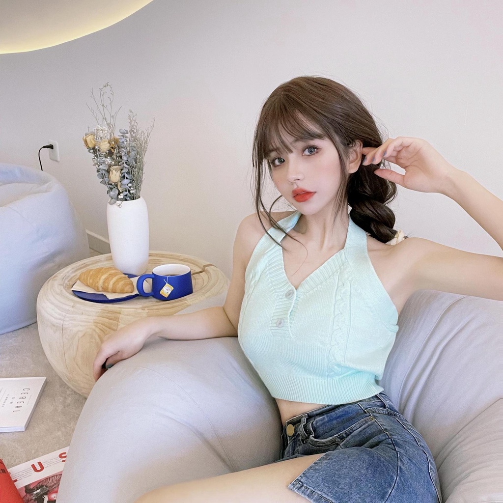 🔰 Tên sản phẩm: Áo croptop nữ 2 dây buộc cổ LUHAZO kiểu ôm tay ngắn cổ vuông nhún ngực bigsize thun body k5T4 - Chất liệu: Polyester - Kiểu dáng: Croptop 2 dây - Chi tiết: Cổ V 2 cúc - Màu sắc: Đen - Trắng - Xanh - Hồng - Xám - Size: Onesize (dưới 58kg) - Thương hiệu: LUHAZO