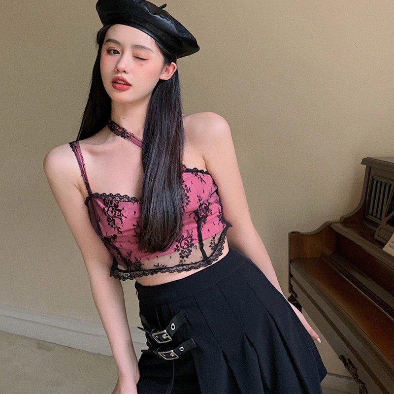 Giới thiệu Áo croptop nữ không tay có dây chéo vai phối ren thời trang