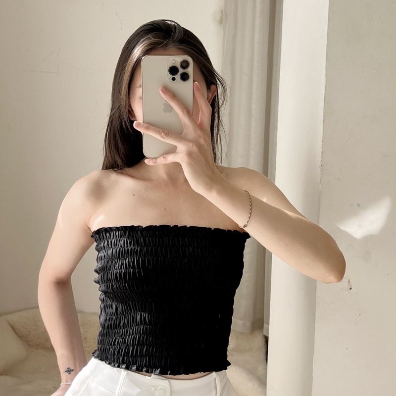 Giới thiệu Áo croptop nữ kiểu quây chun dáng trơn ngang ôm body hàng thiết kế Huien Design màu basic, dễ phối freesize