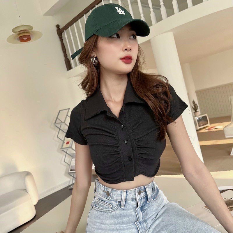 Giới thiệu Áo Croptop Nữ Polo Cổ Bẻ Nhún Ngực Có Nút Gài Kiểu Ôm Body Cực Tôn Dáng Dễ Phối Đồ