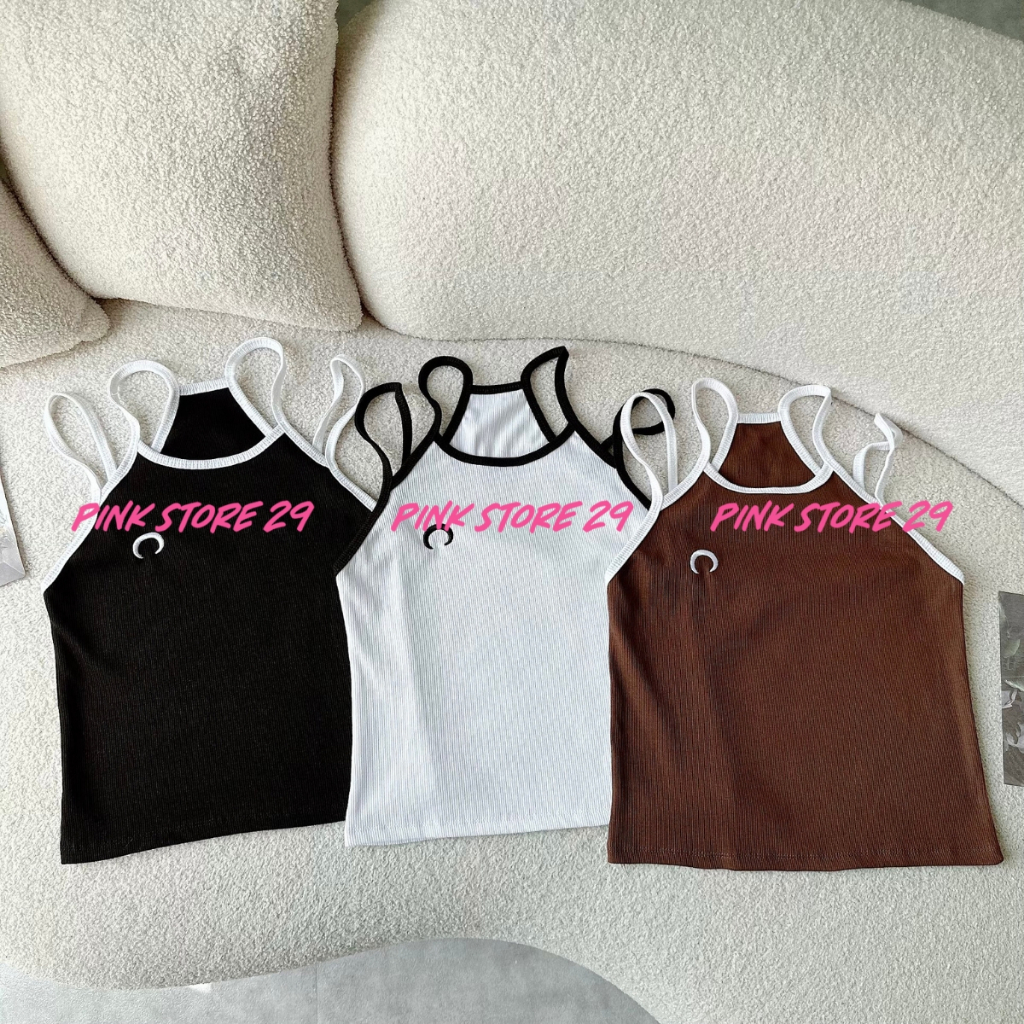 Giới thiệu Áo croptop sát nách viền PINKSTORE29 cổ kiểu yếm, thêu mặt trăng A5764