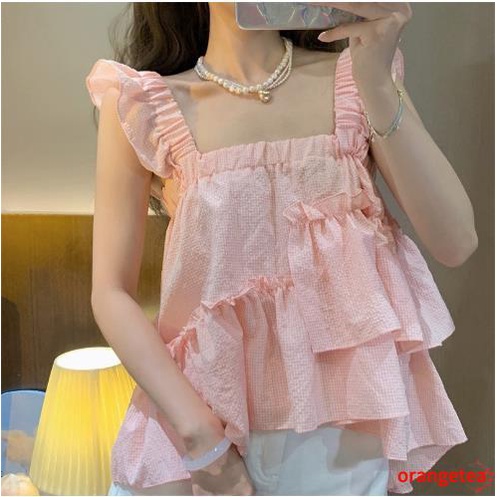 Giới thiệu Áo Croptop Tay Bèo Họa Tiết Sọc Caro Ngọt Ngào Thời Trang Mùa Hè Cho Nữ