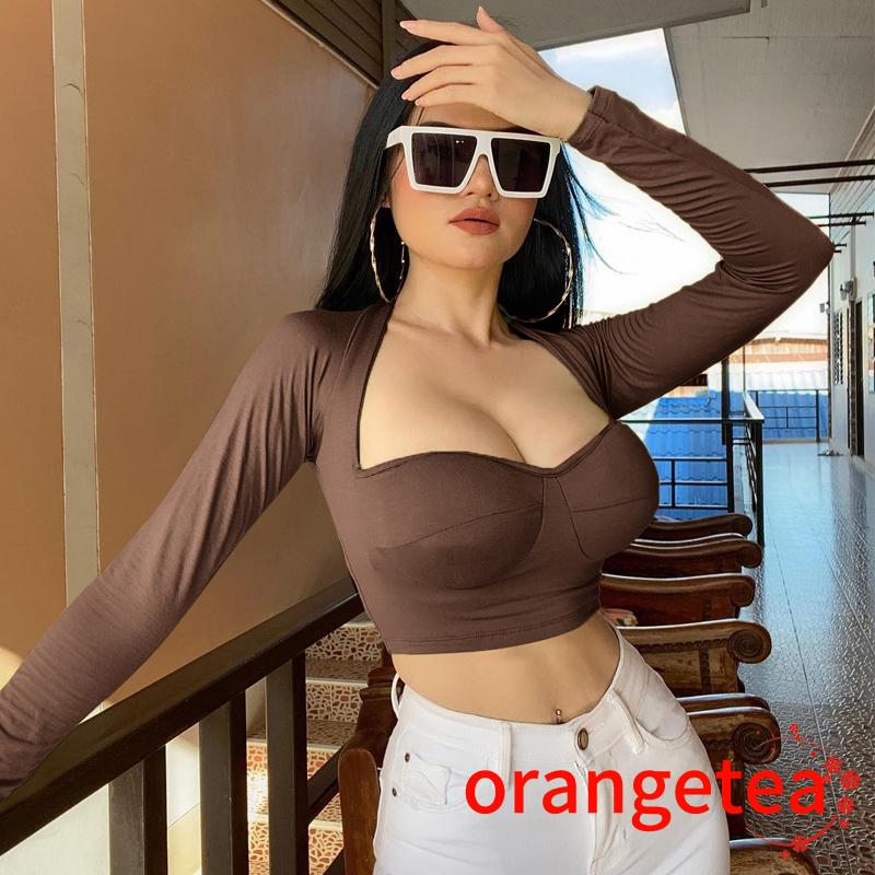 Giới thiệu Áo Croptop Tay Dài Cổ Chữ V Màu Sắc Thanh Lịch