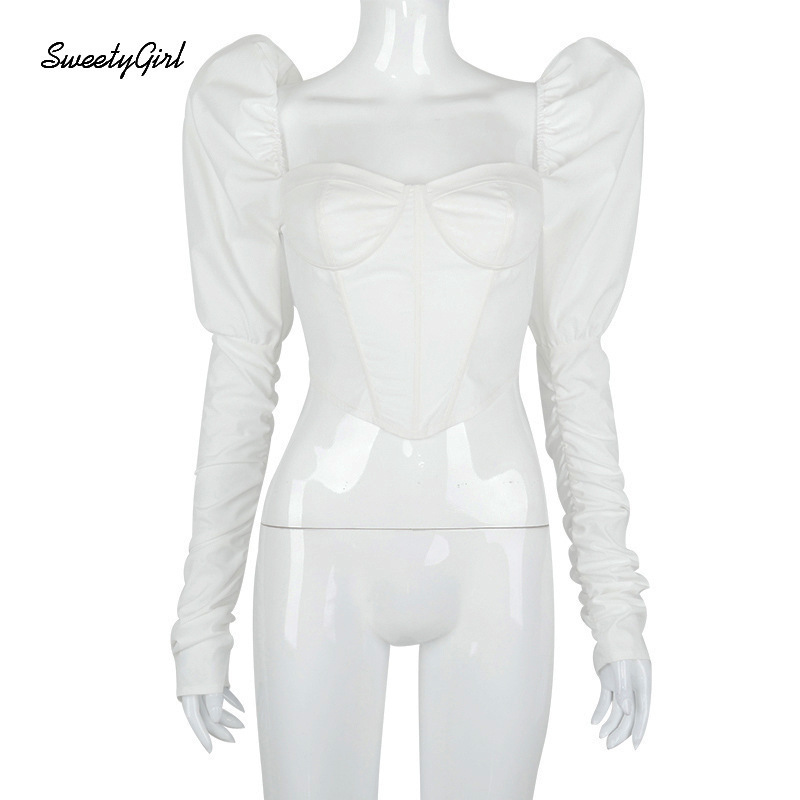 Pattern: solid color Colors: white, black Product category: T-shirt Content of main fabric components: 91%-99% Size: S,M,L Main picture source: Real shot with model Version: slim type Content of main fabric component 2: below 10% Style type: temperament commuting Main fabric component 2: spandex Lining composition: polyester fiber (polyester) Content of lining ingredients: 91%-99% Collar type: square collar Popular elements: fold, stitching Style: pullover Origin: Guangzhou Fabric name: polyester fiber Sleeve type: bubble sleeves Main fabric composition: polyester fiber (polyester) Length: short (40cm< < length ≤50cm) Sleeve length: long sleeve Style: elegant Technology: collage/splicing
