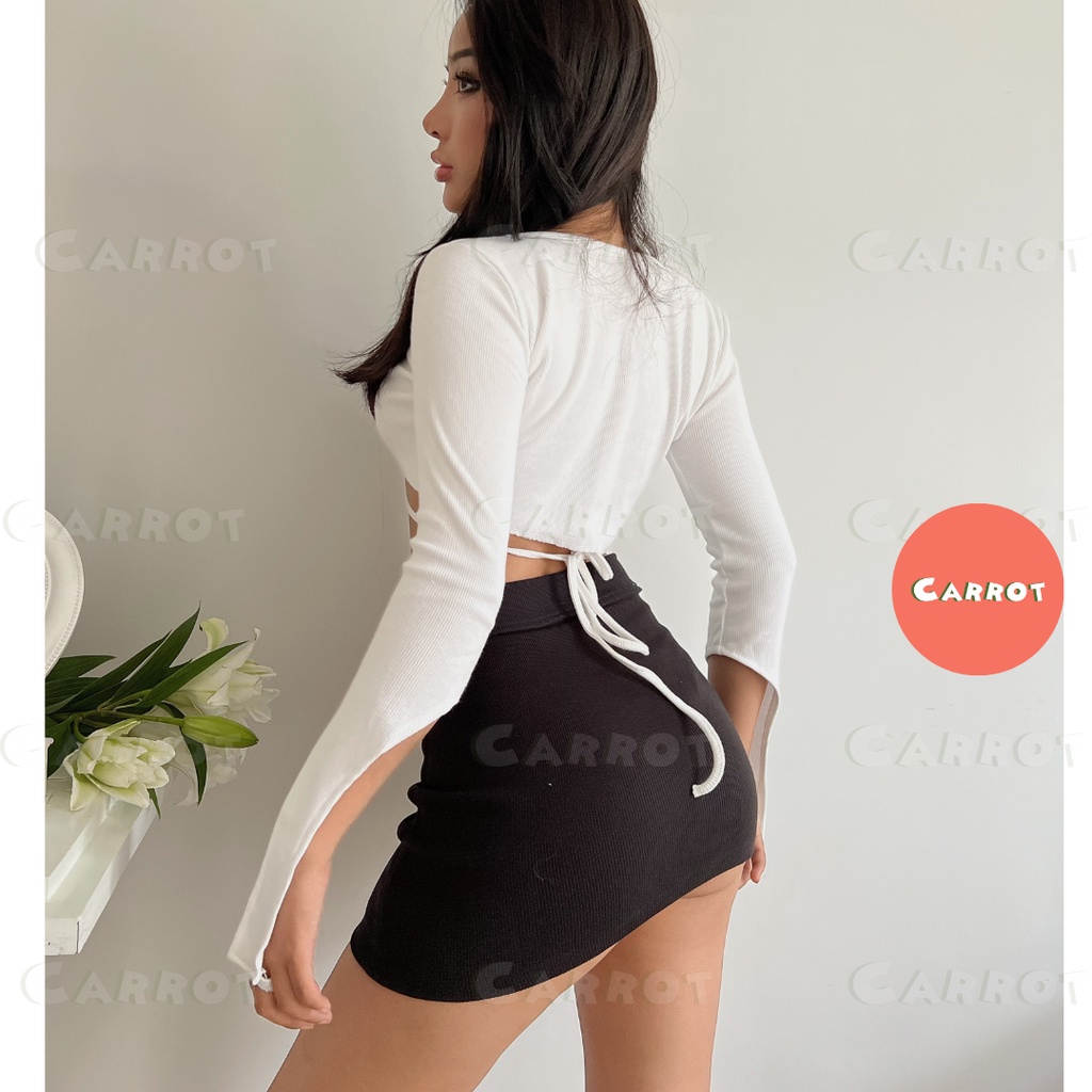 Giới thiệu Áo croptop tay dài sexy trắng thiết kế chân váy đen basic ôm eo tôn dáng trendy thời trang nữ carrotxinhdep