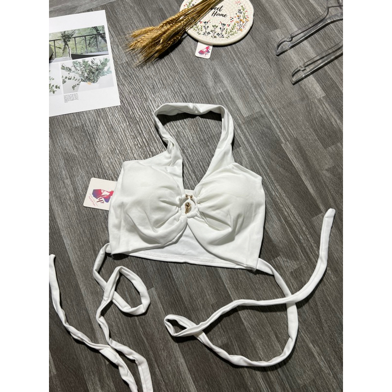Giới thiệu Áo croptop yếm choàng cổ phối khoen, áo nữ hở lưng body cột nơ có mút G211