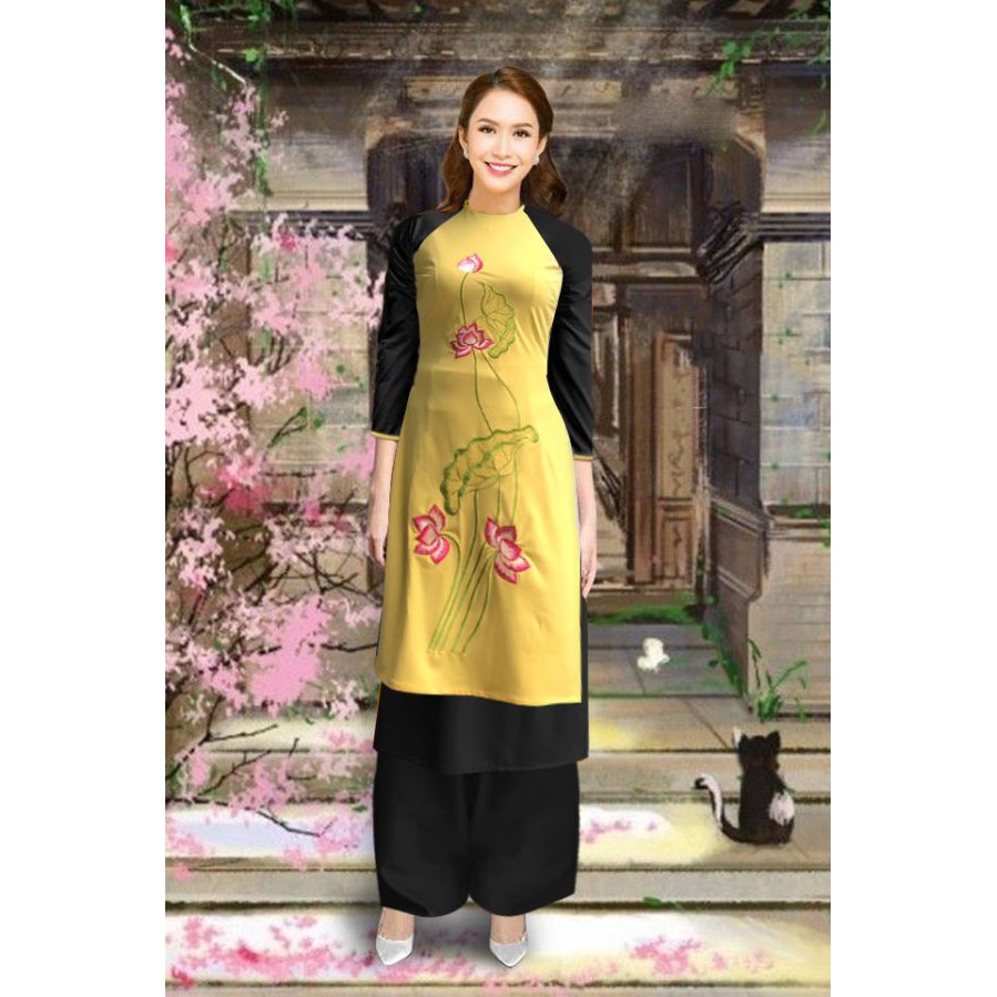 Giới thiệu Áo dài 2 tà thêu hoa Sen ( KHÔNG KÈM QUẦN) - MS2020AD