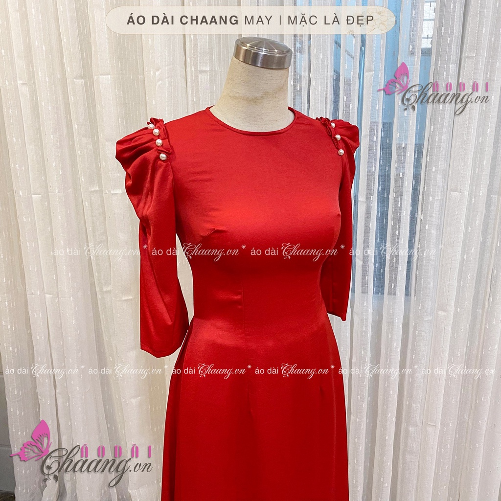 Giới thiệu Áo Dài Cách Tân Nữ Tay Xếp Bồng Phồng Đính Ngọc May Sẵn Lụa Tây Thi 2 Tà Truyền Thống