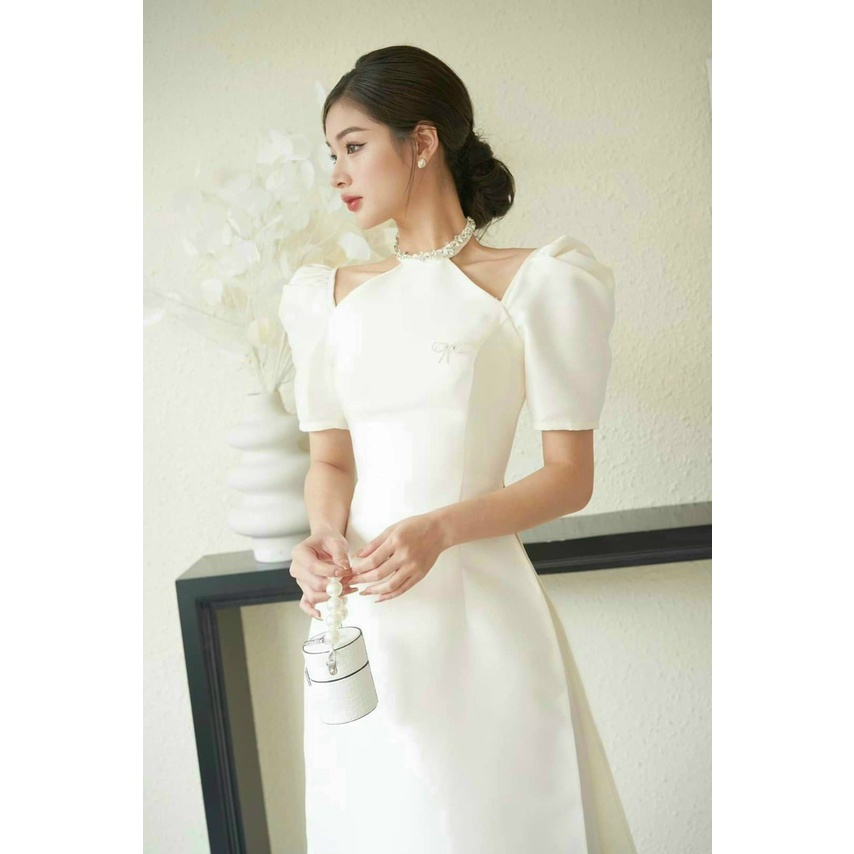 Giới thiệu ÁO DÀI CÁCH TÂN TAY BỒNG CỔ ĐÍNH ĐÁ MÀU TRẮNG, ÁO DÀI MẶC TẾT ADCT2TĐĐ