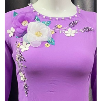 Giới thiệu ÁO DÀI CHIFFON CỔ TRÒN ĐÍNH HOA HỒNG MÀU TÍM, ÁO DÀI 4 TÀ TRUYỀN THỐNG - AD2TCF-Tím