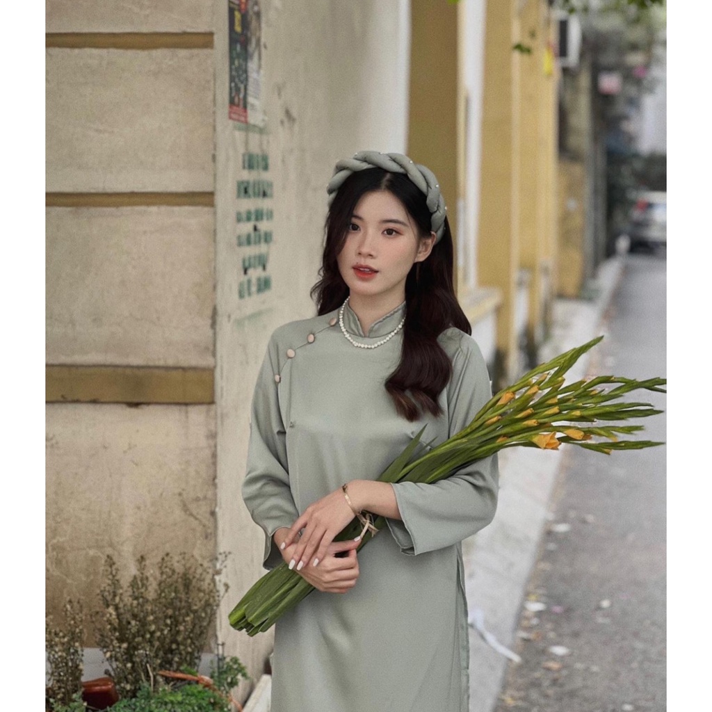 Áo dài lụa trơn kèm mấn đội đầu siêu xinh mã mới 4 màu đón tết 2023 Kozoda AD3