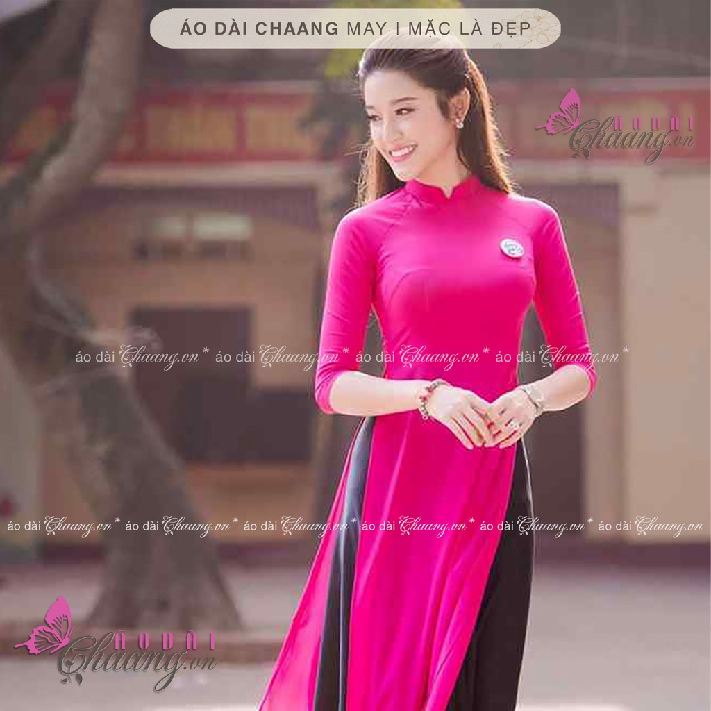 Giới thiệu Áo dài màu hồng sen đỏ_Chaang_May sẵn áo dài truyền thống cổ vuông tay lỡ, vải lụa đẹp