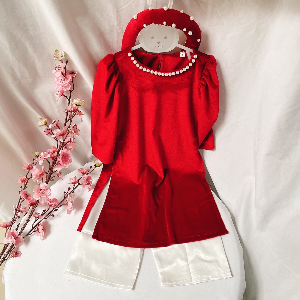 SET ÁO DÀI NHUNG CHO BÉ 8-33kg - set kèm quần và mấn- Hình thật 🧧🧧 Thấy áo dài là thấy tết 🎉🎉 bao gồm : 👉 1 áo dài nhung trơn đính ngọc( chất xịn dày dặn mà còn ấm đảm bảo sức khoẻ) 👉 1 quần xuông vải lụa đẹp mịn 👉 1 mấn đính ngọc đội đầu Cam kết về chất lượng sản phẩm cho các mẹ yên tâm ạ! shop set size từ 8 đến 30kg ạ! shop có 2 màu quần trắng và đen cho các mẹ lựa chọn ạ. ✔️ Bảng size ☘ 4 : 8 - 12kg ☘ 5 : 13 - 17kg ☘ 6 : 17 - 20kg ☘ 7 : 20 - 24kg ☘ 8 : 24 - 30kg
