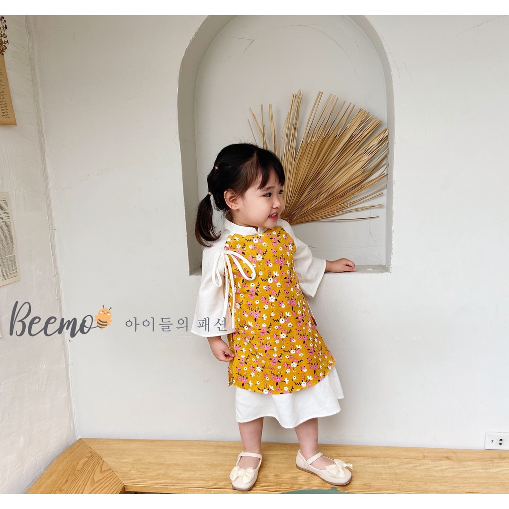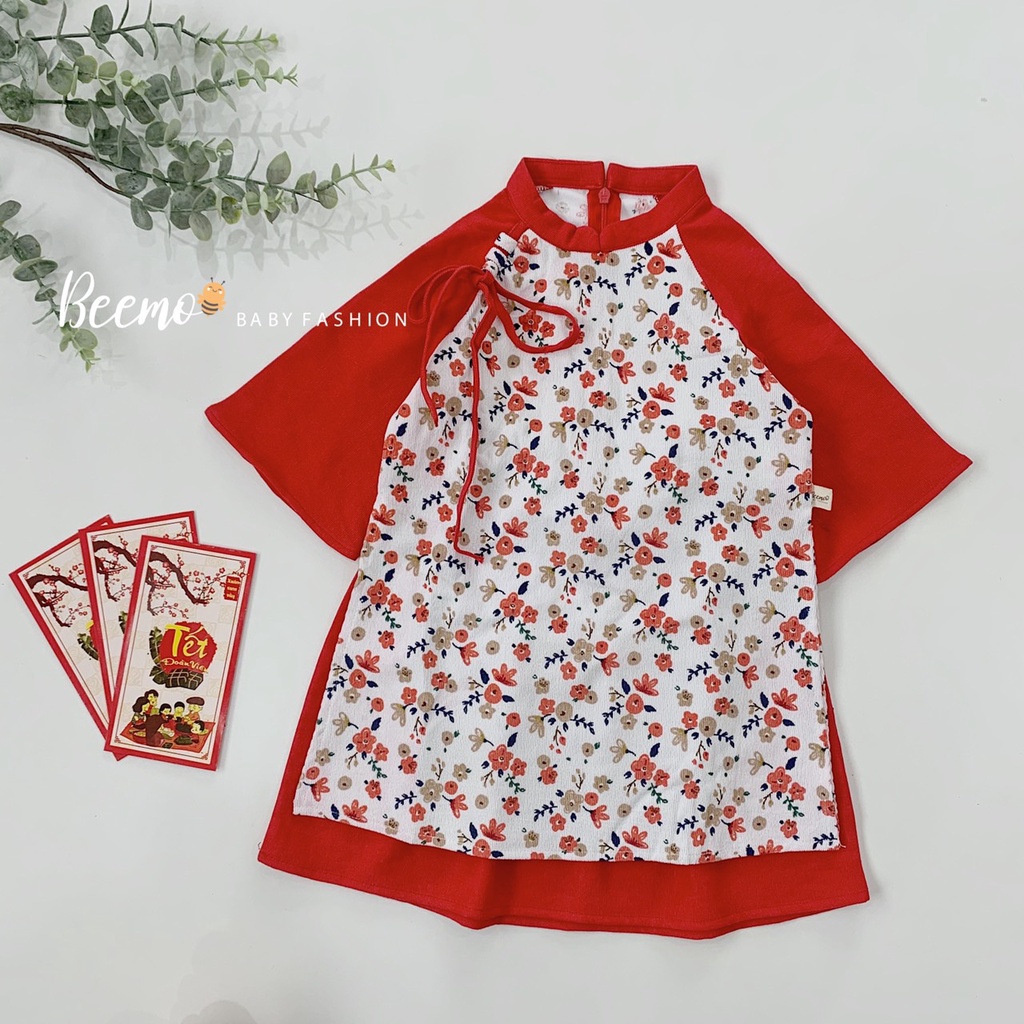Giới thiệu Áo dài Tết cho bé gái Beemo, Chất liệu nhung tăm mềm min, họa tiết hoa nhí xinh xắn, 2 màu cực đẹp B101