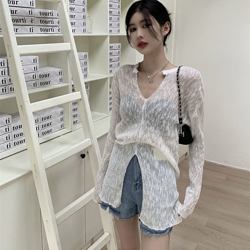 Giới thiệu ∋▫Áo Dệt Kim Cổ Chữ V Vải Mỏng Màu Trơn Thời Trang Xuân Hè Dành Cho Nữ 2022