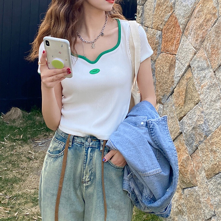 Giới thiệu Áo Dệt Kim Ngắn Tay Cổ Vuông Đơn Giản Thời Trang Mùa Hè Cho Nữ