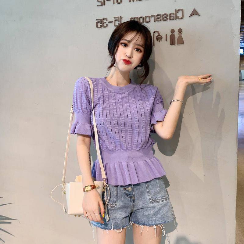 Giới thiệu Áo Dệt Kim Tay Ngắn Dáng Ôm Thiết Kế Khoét Lỗ Thời Trang Quyến Rũ Cho Nữ