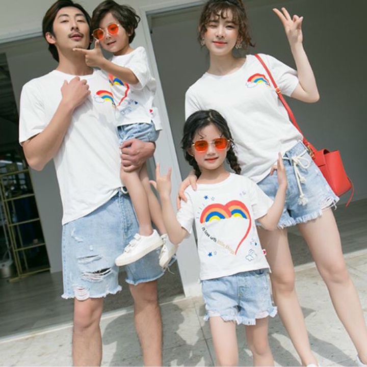 Giới thiệu Áo Đồng Phục Gia Đình 4 Người In Trái Tim Cầu Vòng Bán Chạy