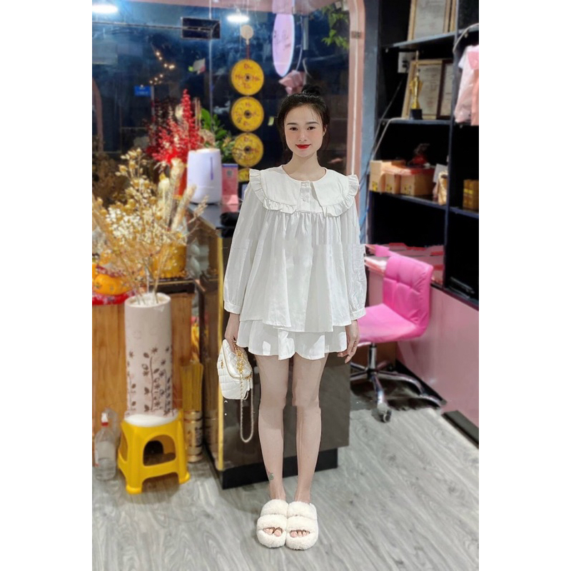 ▪️ Áo đũi tay dài form rộng + chân váy Chất liệu : Đũi Size: Freesize Màu: Trắng