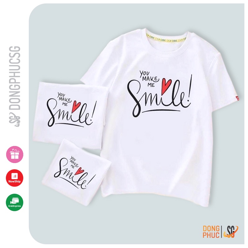 Giới thiệu Áo gia đình đồng phục - Mẫu in chữ Smile - Màu trắng thun cotton dày dặn GD327T | DONGPHUCSG