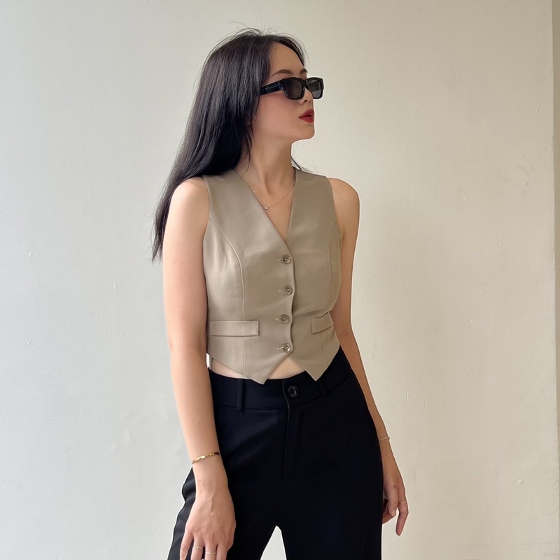 Giới thiệu Áo gile nữ 2 lớp cổ V hàng thiết kế Huien Design phong cách Hàn Quốc, form rộng có cơi túi