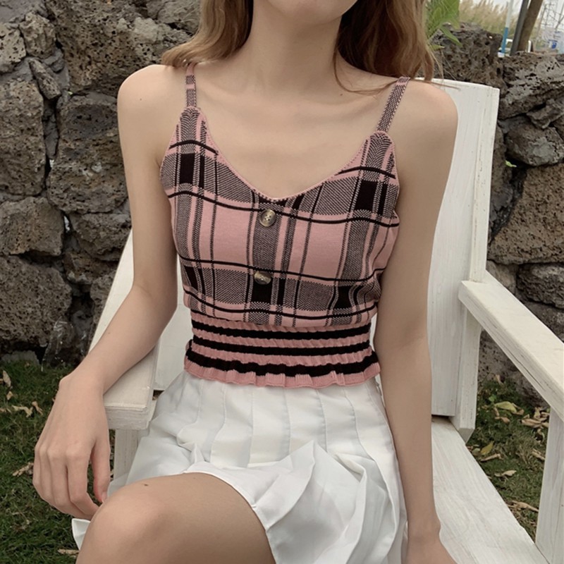 Giới thiệu Áo Hai Dây Cổ Chữ V Họa Tiết Kẻ Ca Rô Gợi Cảm