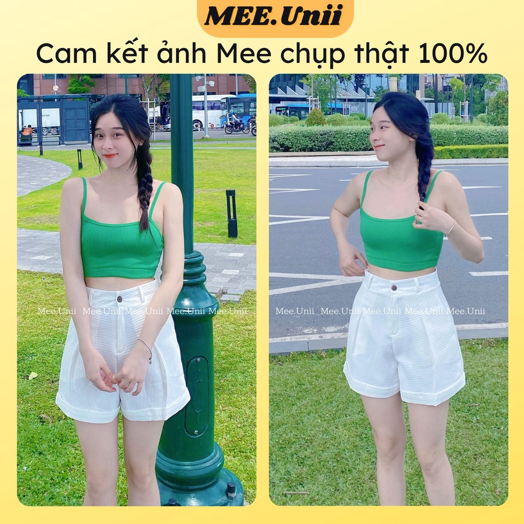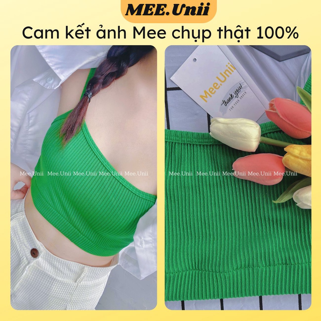 Giới thiệu Áo hai dây croptop nữ MEE.UNII len gân co dãn kiểu ôm, áo bra gân bo chun tiện lợi trắng đen xanh lá