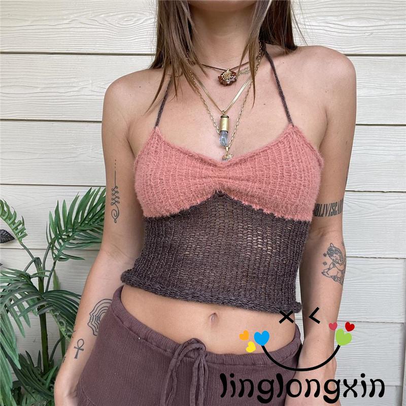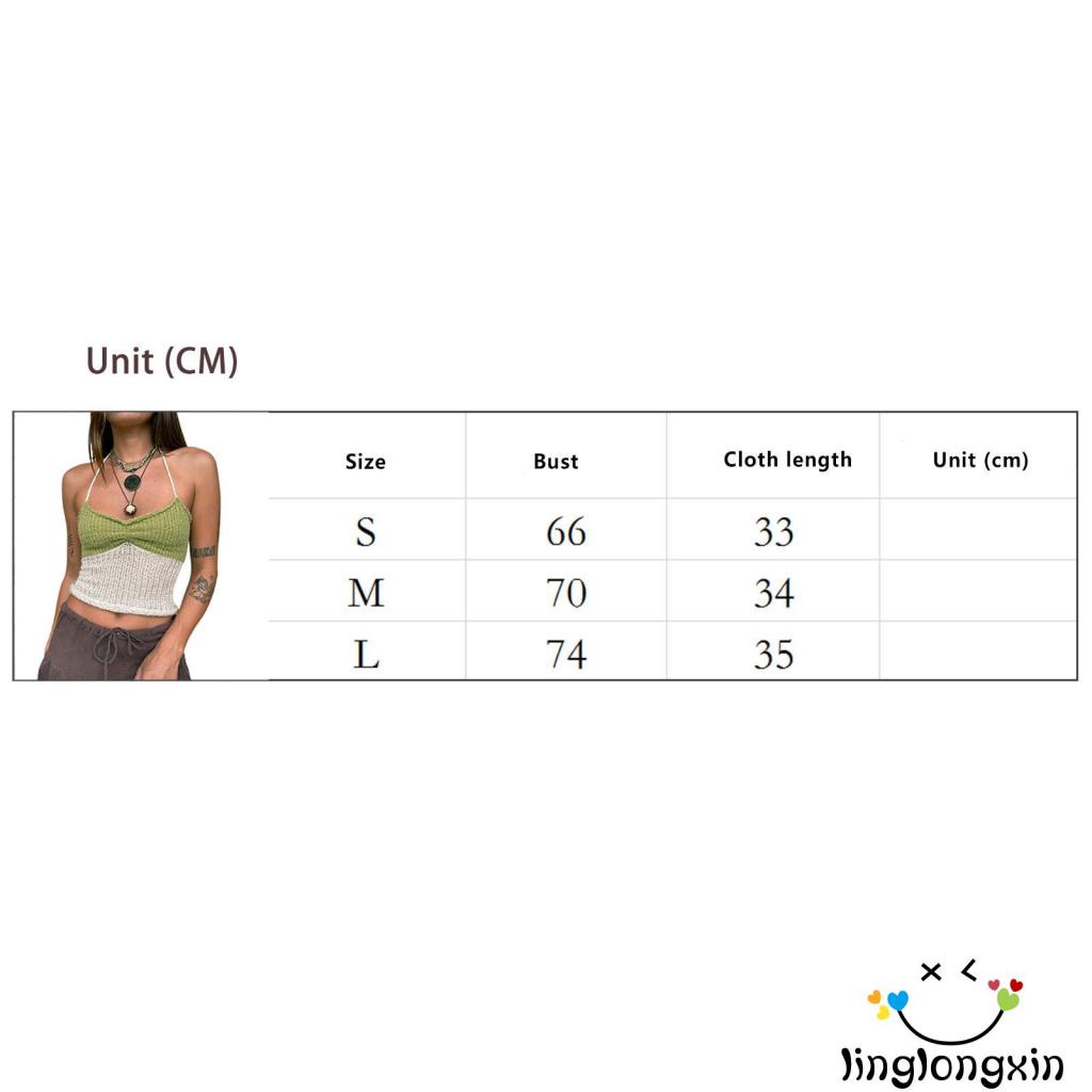 Giới thiệu Áo Hai Dây Dệt Kim Mỏng Vừa Vặn Màu Sắc Tương Phản Không Tay Linglongxi2 Cho Nữ