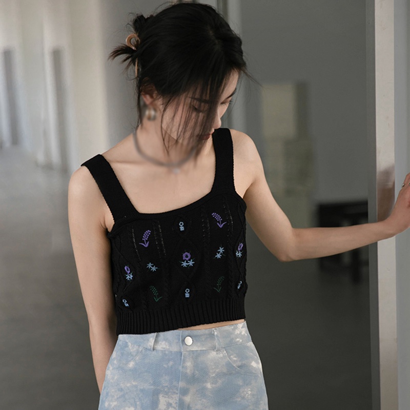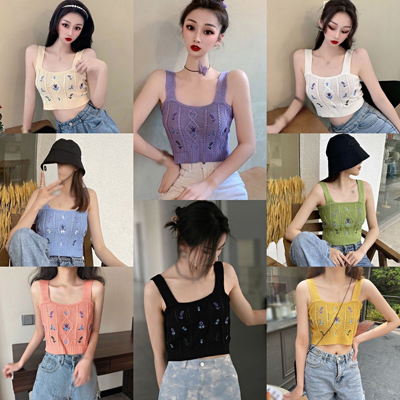 Mô tả sản phẩm: Loại vải: Dệt kim Loại áo: Hai dây Chiều dài áo: Ngắn Họa tiết: Hoa
