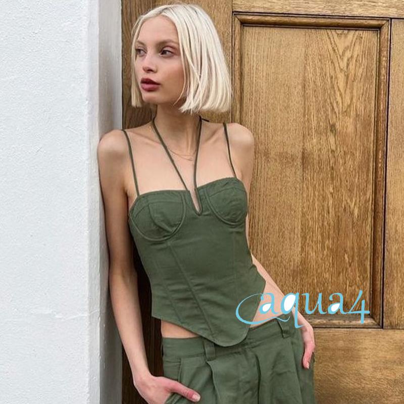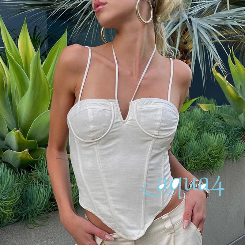 Phụ nữ mùa hè áo yếm, áo yếm cổ trơn có dây đeo Spaghetti Dây đeo khăn tay Hem Vest Slim Fit Show Navel Tank Tops