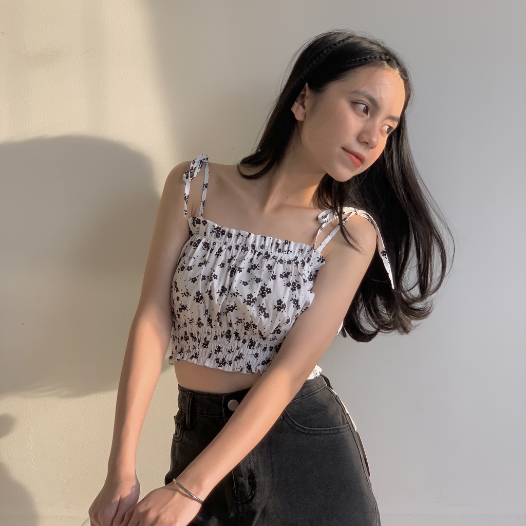 Giới thiệu Áo hai dây nữ dáng ngắn nơ vai vải hoa mềm siêu xinh TKA330 LOLLIE STUDIO