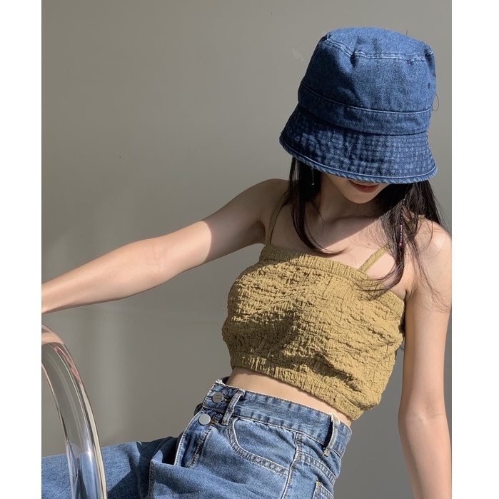 Giới thiệu Áo hai dây nữ vải nhún dáng ngắn TKA331 LOLLIE STUDIO