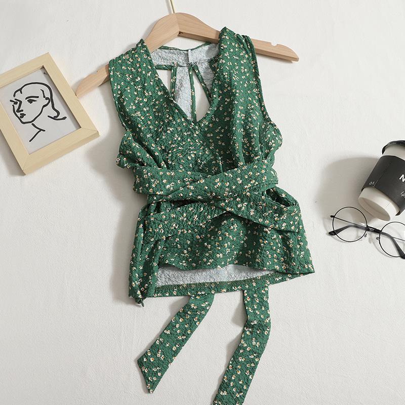 Giới thiệu Áo hoa BH sát nách cổ v phối dây buộc thời trang mùa hè 2022 cho nữ
