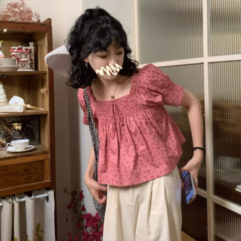Giới thiệu Áo Hoa Cổ Vuông Cột Dây Tay Ngắn Thời Trang Mùa Hè Xinh Xắn Cho Nữ