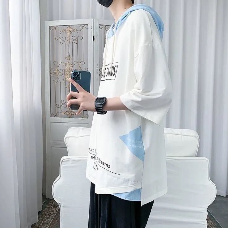 Giới thiệu Áo hoodie giả hai lớp tay ngắn dáng rộng thời trang mùa hè cho nam giới