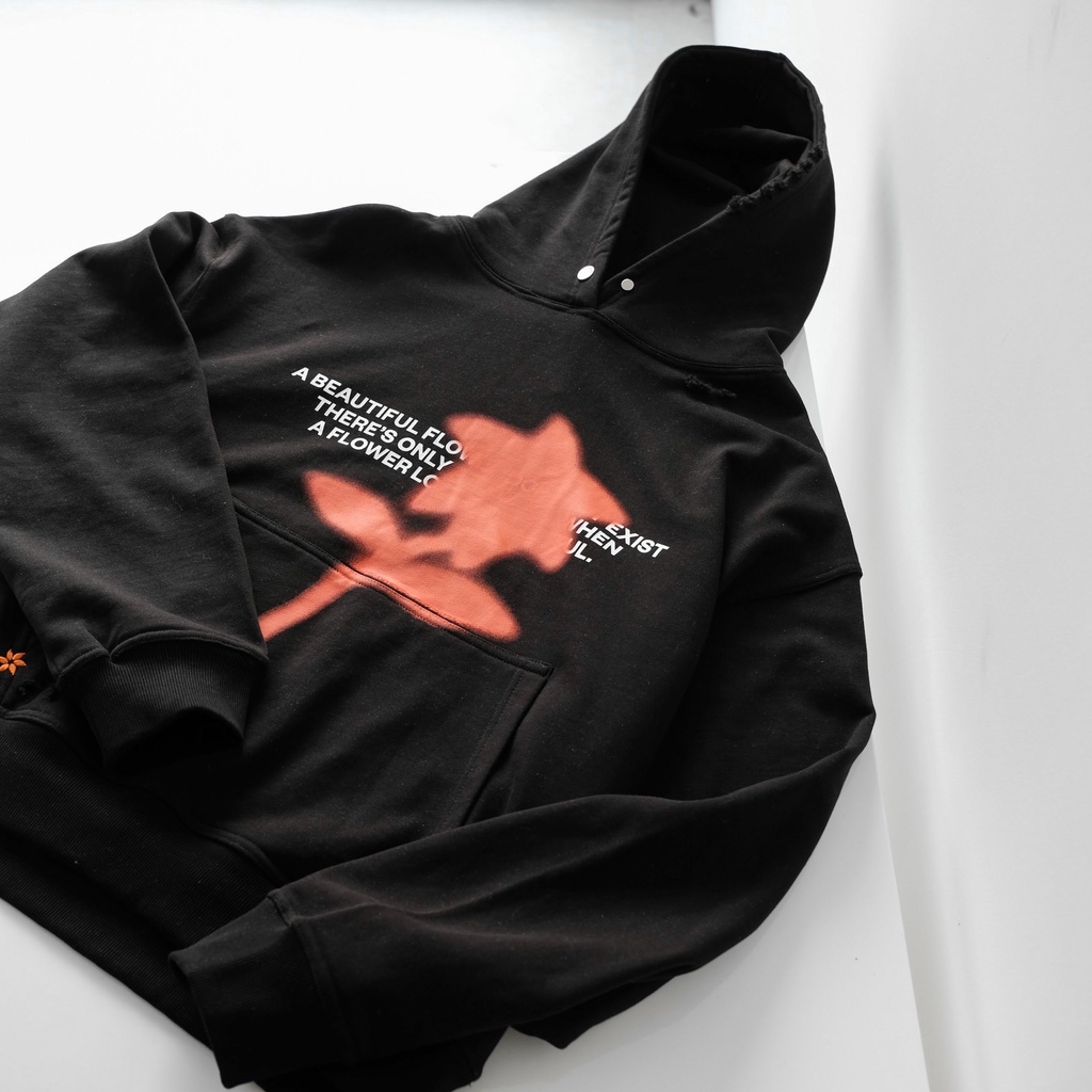 Giới thiệu Áo hoodie nam nữ form boxy CANDLES RD FLOWER chi tiết mài rách thủ công nỉ chân cua 440gsm chính hãng