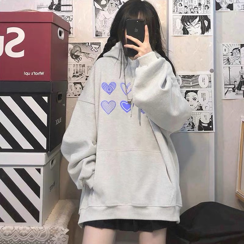Giới thiệu Áo Hoodie Nỉ Bông Dài Tay Trái Tim Xinh Xắn Có Túi Bụng To