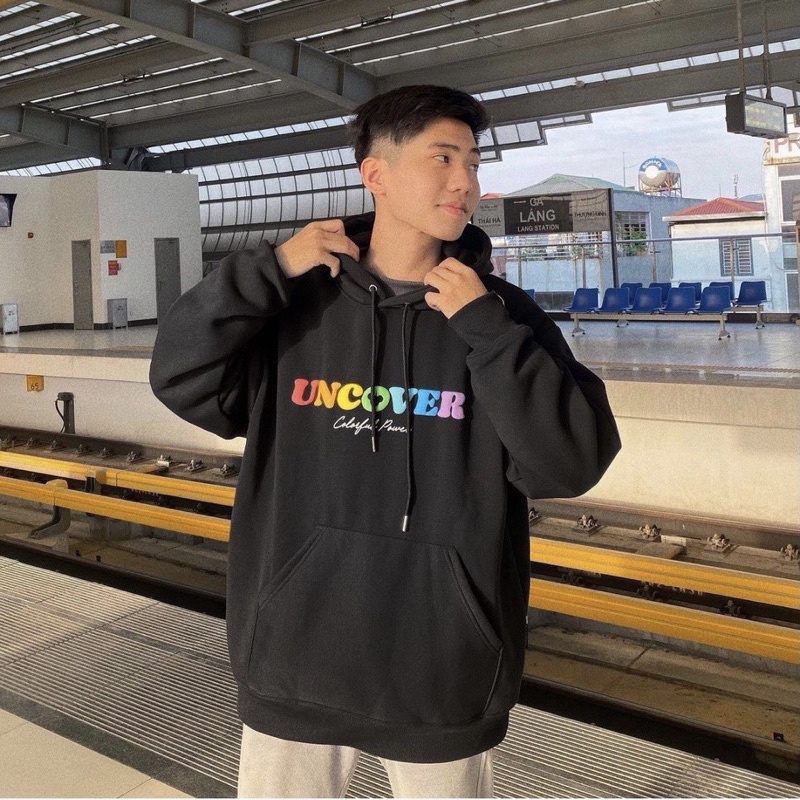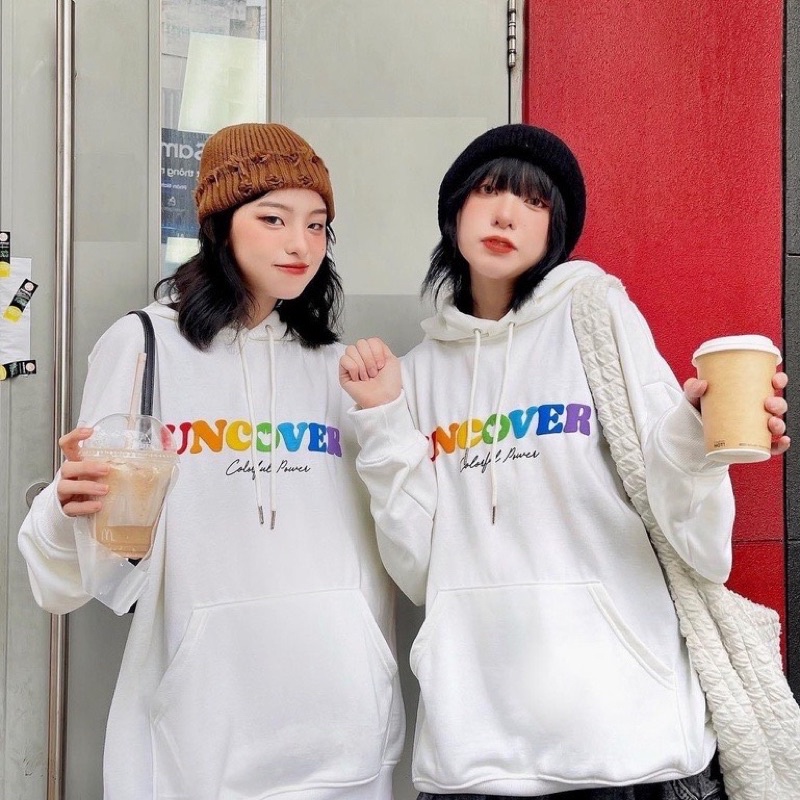 Giới thiệu Áo Hoodie Nỉ Mũ 2 Lớp UNCOVER 2 Màu Đen Trắng Freesize Kiểu Dáng Hàn Quốc Ulzzang