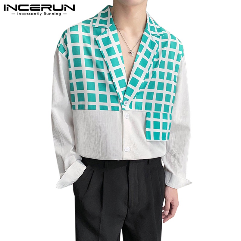 Giới thiệu Áo khoác blazer INCERUN dài tay họa tiết sọc caro thời trang cho nam