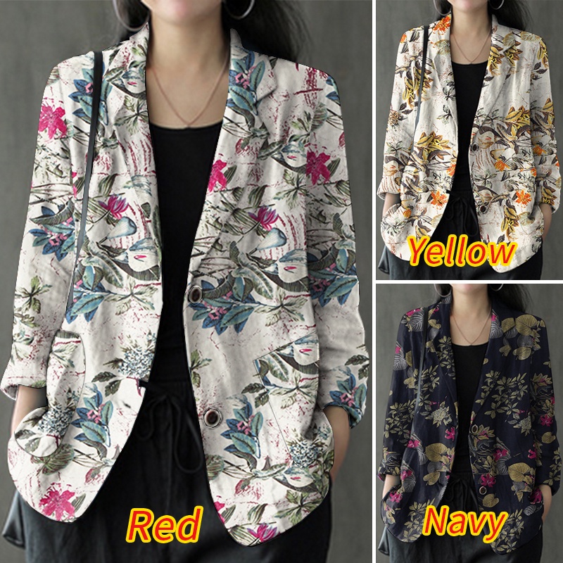Giới thiệu Áo khoác Blazer ZANZEA tay dài cài nút in hình hoa vải cotton thời cổ điển cơ bản cho nữ
