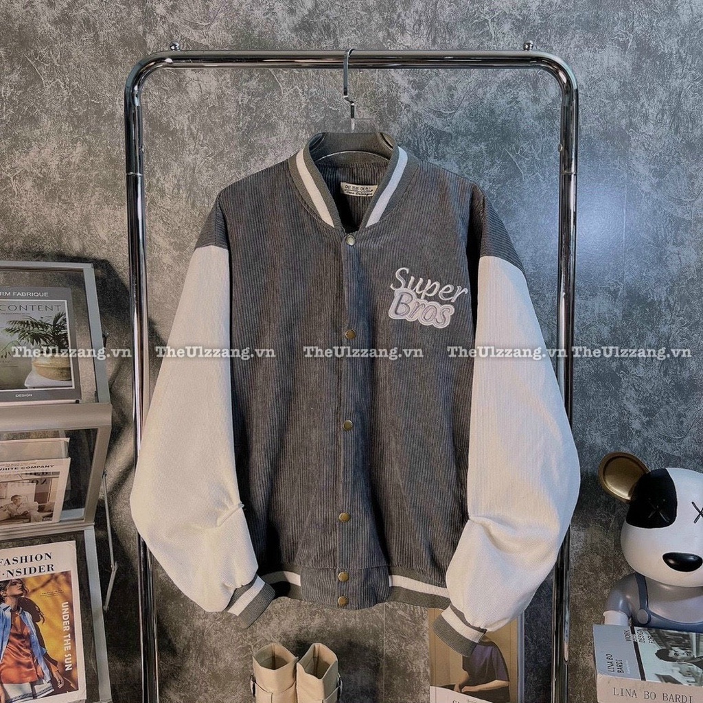 Giới thiệu Áo Khoác Bomber Nhung Gân Nam Nữ Unisex Logo Thêu Chất 2 Lớp Dày Dặn Phong Cách Hàn Quốc (SuperBros))