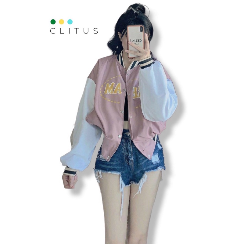 Giới thiệu Áo Khoác Bomber Nữ Form Lỡ 2 Lớp Phối Tay Siêu Xịn - CLITUS FASHION