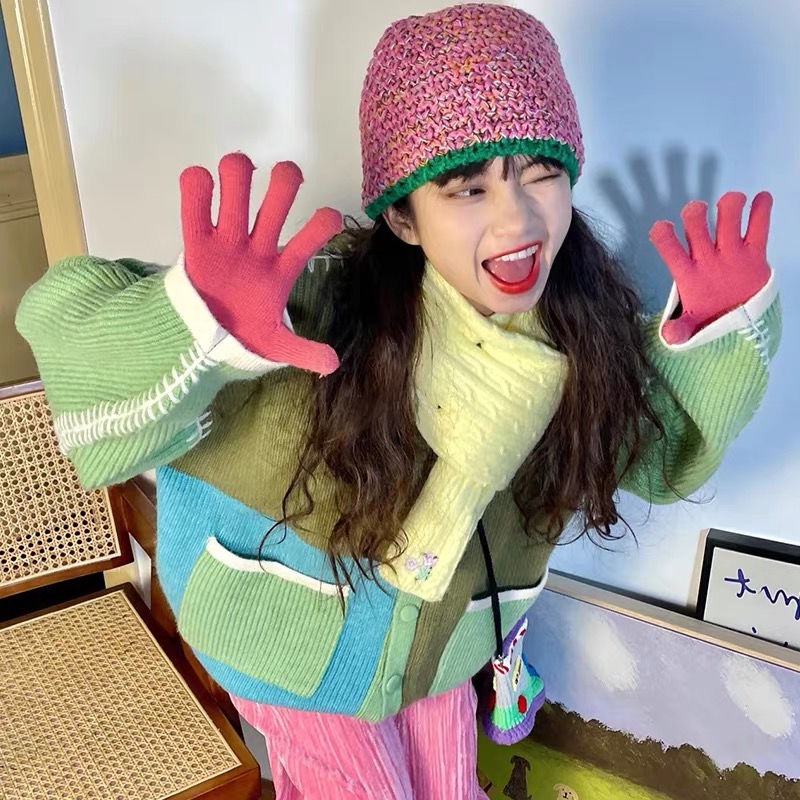 Giới thiệu Áo Khoác Cardigan Dáng Rộng Màu Sắc Tương Phản Phong Cách Hàn Quốc