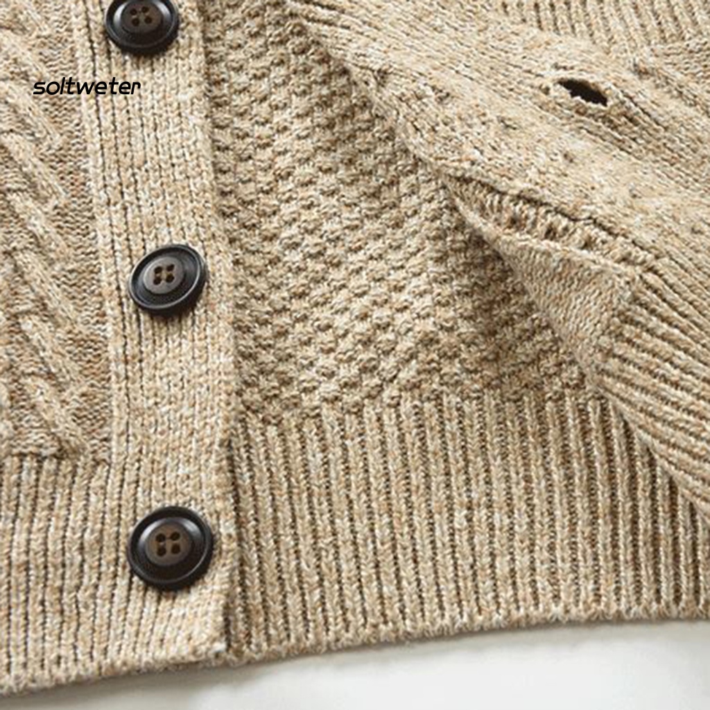 Giới thiệu Áo Khoác Cardigan Dệt Kim Tay Dài Màu Trơn Giữ Ấm Mùa Đông Cho Nam