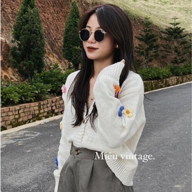 Giới thiệu Áo khoác cardigan len dệt kim nữ ullzzang phối hoa cúc cài Shynstores
