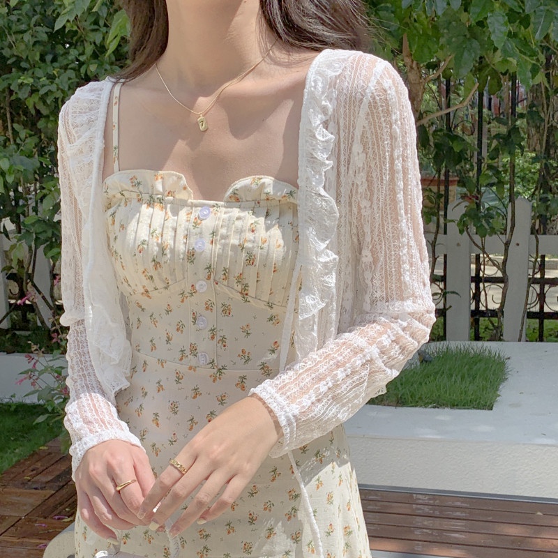 Áo khoác cardigan ZHELIHANGFEI chống nắng phối ren xinh xắn thời trang