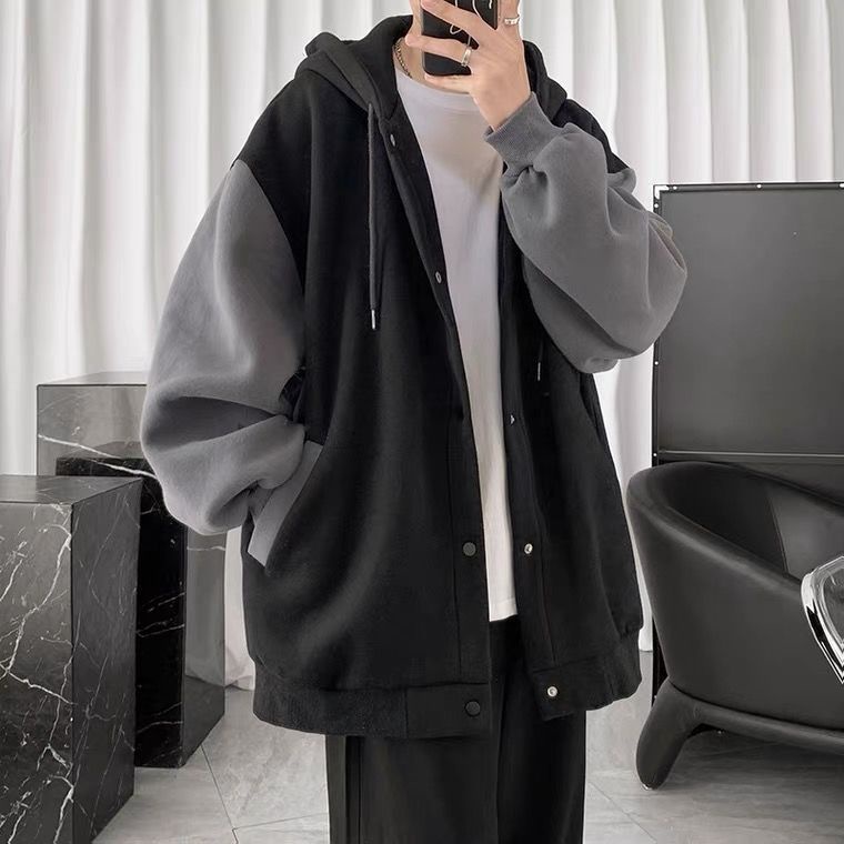 Chi tiết kiểu áo: màu tương phản, nút cài, đường khâu Phong cách: xu hướng Phù hợp với: Giới trẻ Loại cổ áo: Có nón trùm